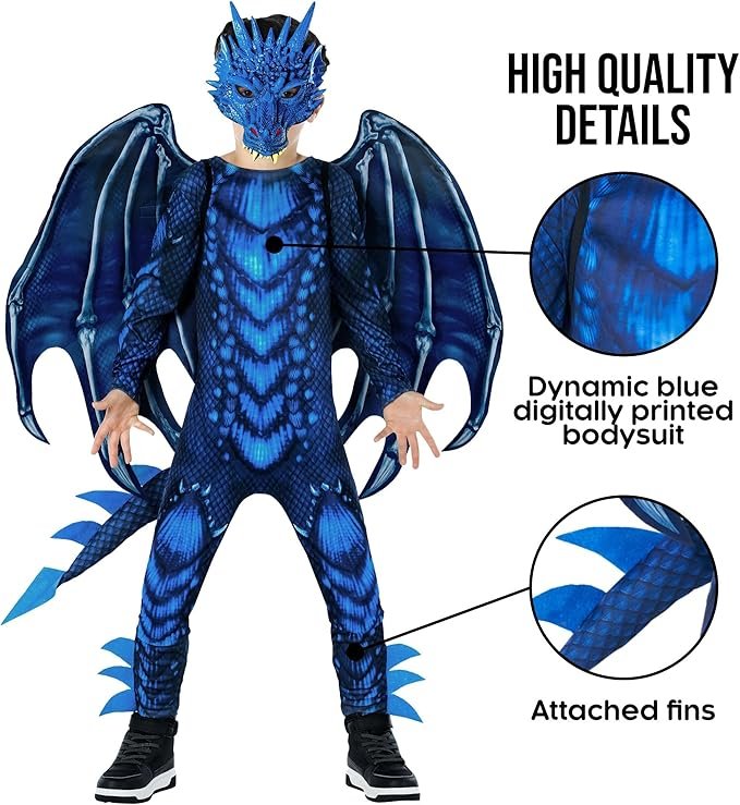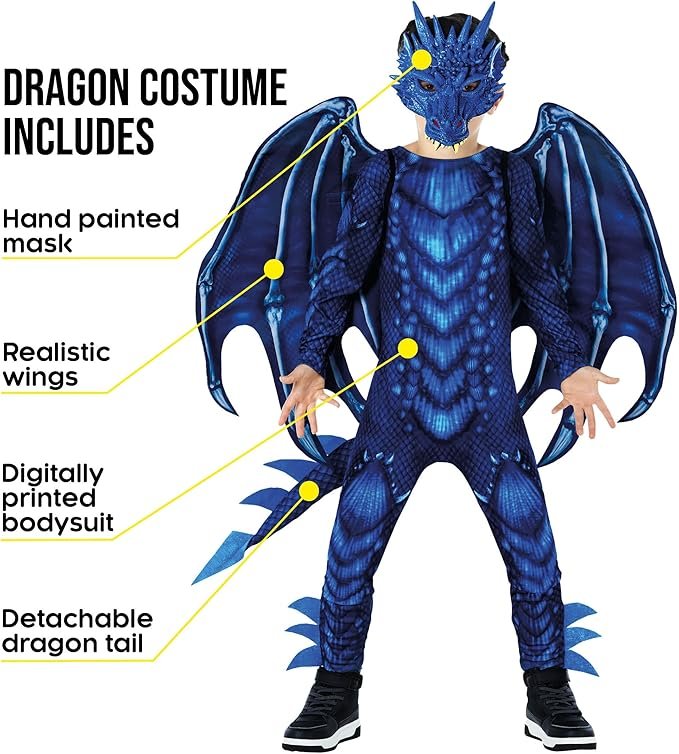 Spooktacular Creations Halloween Kid Dragon Costume, Boys Dragon Wings, Tail and Mask Set for Halloween Dress Up