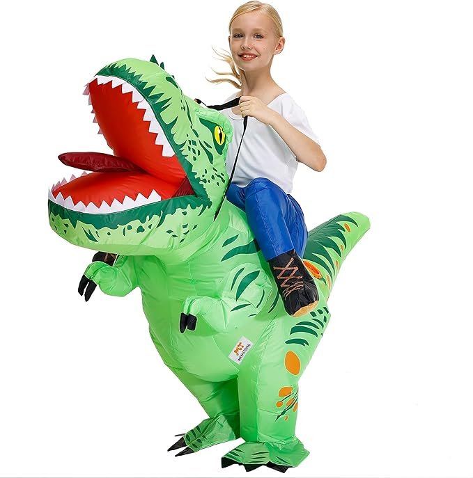 1 review for MT MENGTONG Inflatable Dinosaur Costume Kids Riding T Rex Blow up Halloween Costume Funny Party for Boys/Girls