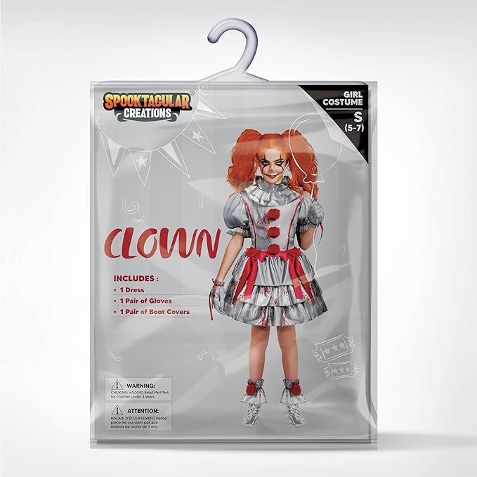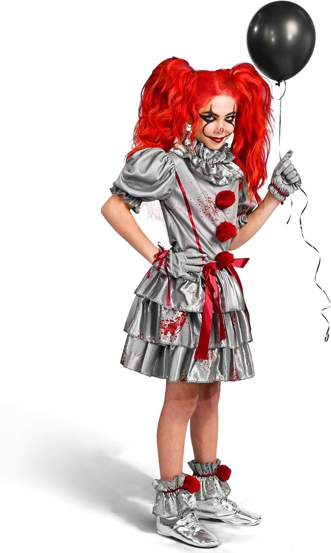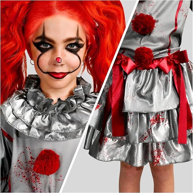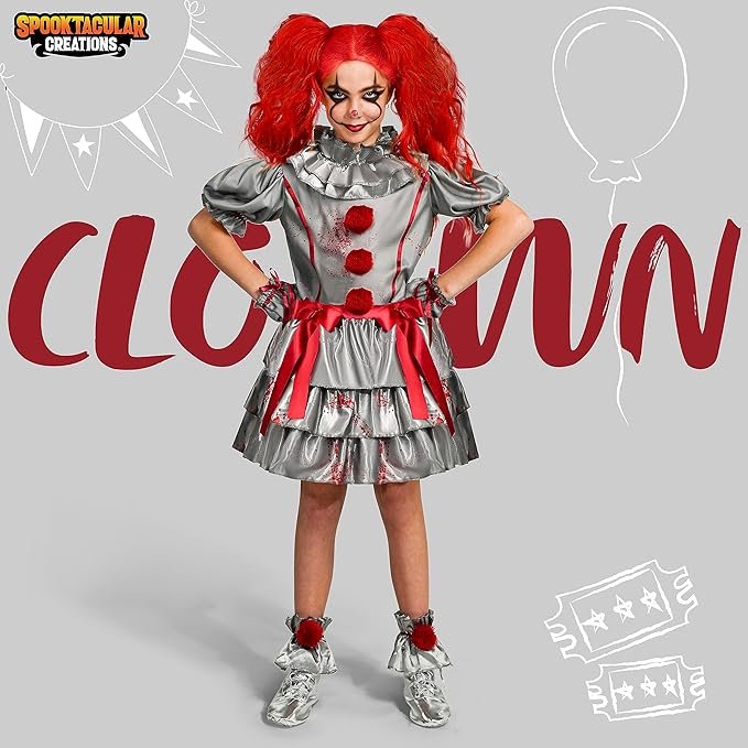 Spooktacular Creations Girls Clown Costume, Evil Clown Dress, Halloween Scary Jester Costume for Girls Halloween