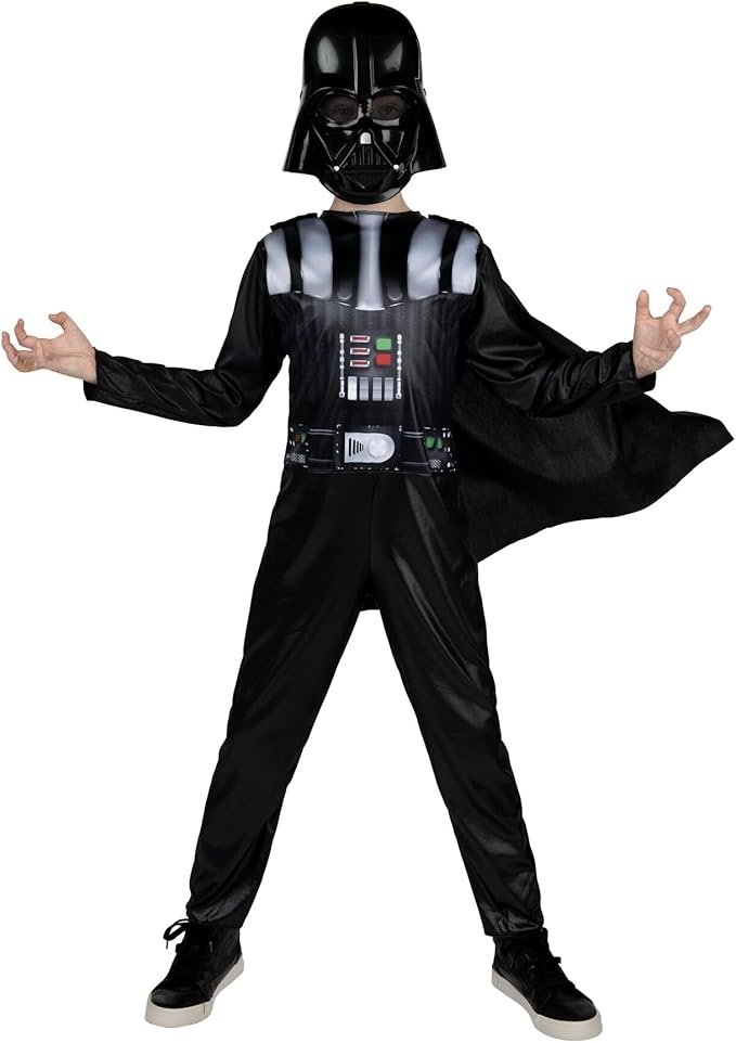STAR WARS Darth Vader Official Youth Halloween Costume – Printed Jumpsuit with Cape and Plastic Mask
