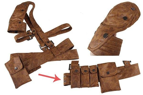 • Package include: One jumpsuit, one pair of hand protectors, four bags, one holster, one elbow protector, one shoulder strap and one belt on both sides